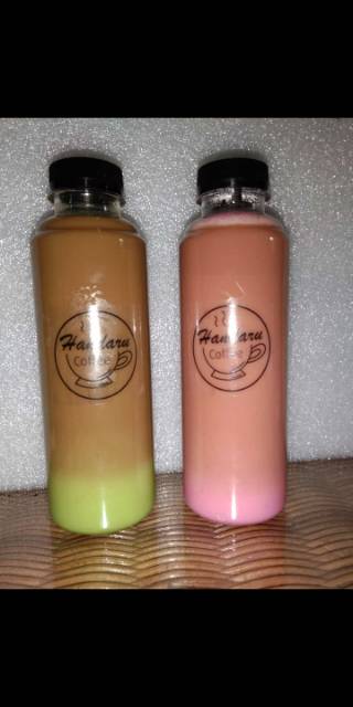 Handaru Coffee Homemade tanpa pengawet dan pemanis buatan hany bertahan diluar ruangan 2-3 hari dan didalam kulkas seminggu. tersedia rasa dolce latte, avocado latte, tiramisu latte, hazelnut latte, caramel latte, stoberi latte, thaitea, greentea, avocado milk, stoberi milk. komposisi: biji kopi asli, skm, dan fresh milk.