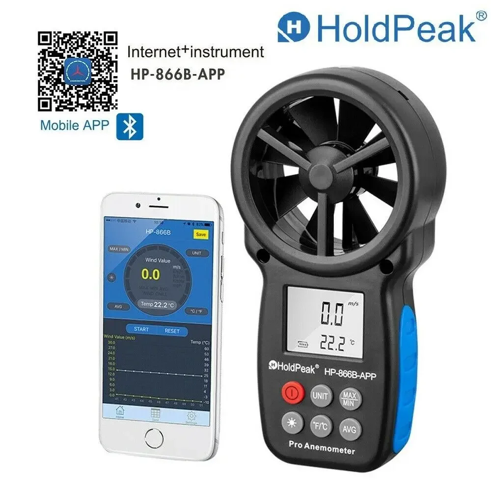 Handheld Air Flow Meter 866B-APP Wind Speed Meter for Measuring Wind Digital Anemometer Smart APP Control & Record Supported