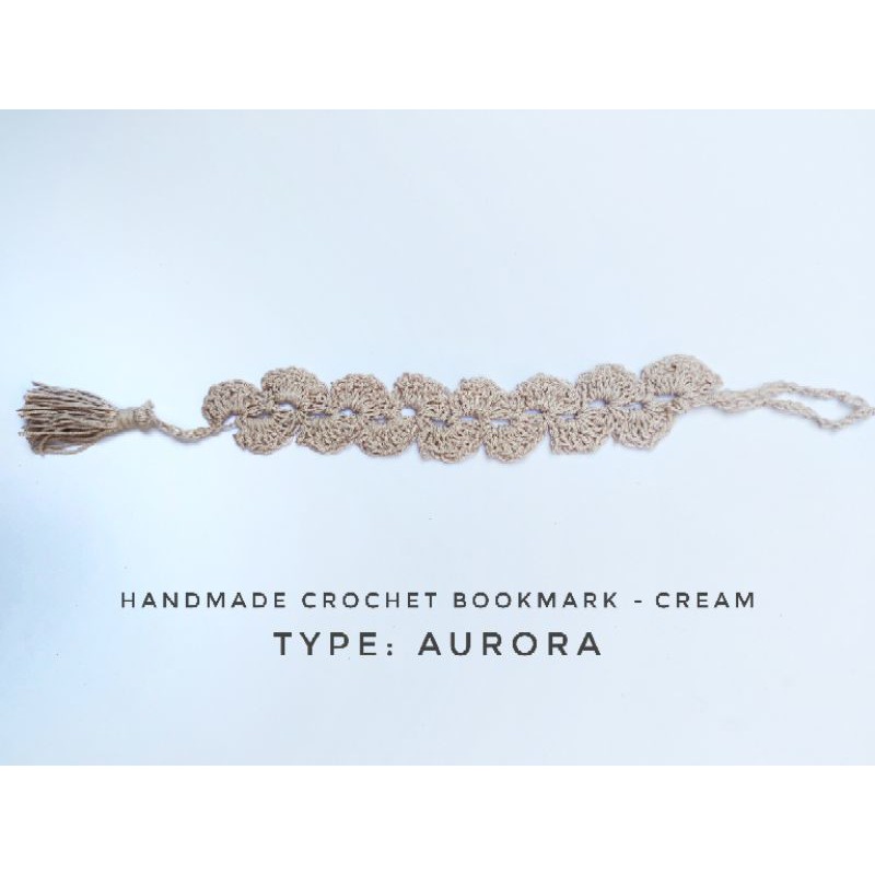 Handmade Crochet Bookmark Type Aurora. Bookmark ini pasti bisa meningkatkan minat membaca karena lebih aesthetic. Bahan terbuat dari benang katun. Ini adalah tipe Aurora dengan rumbai dan kaitan di atasnya.