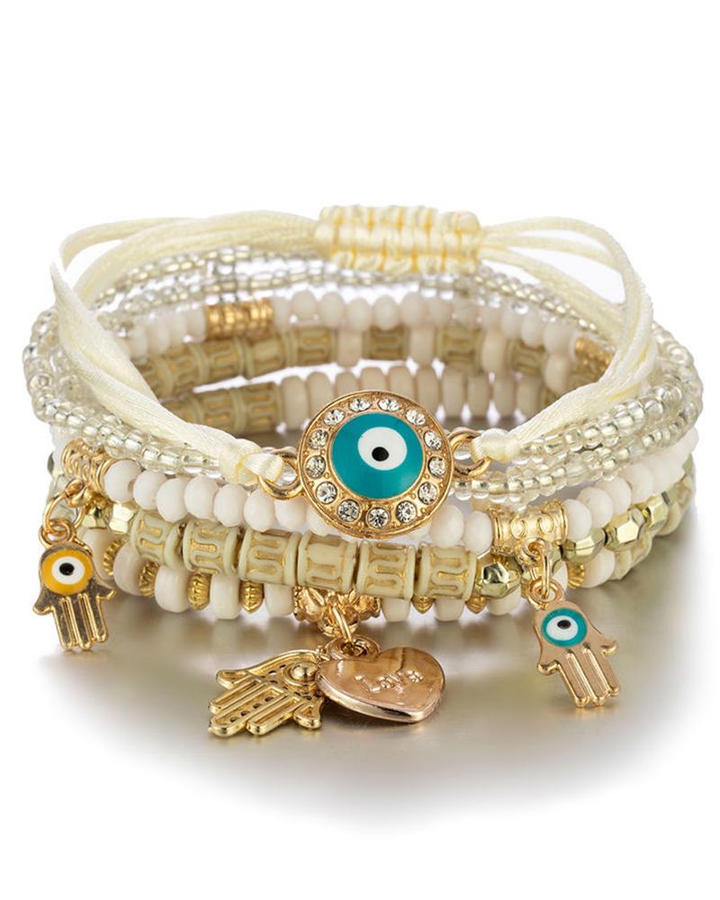 Hands Eyes Pattern Stacking Elastic Beaded Multi-layer Bracelet, White