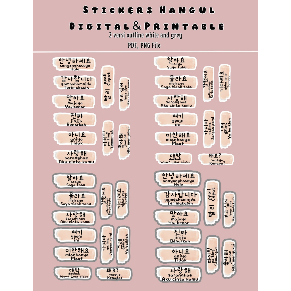 Hangul Sticker - Printable & Digital stickers - PNG, PDF, printable planner stickers
