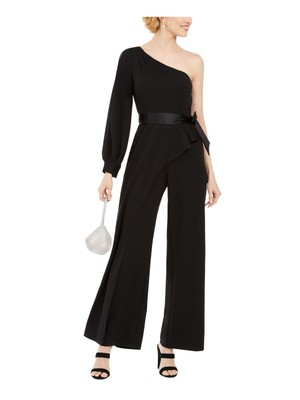 ADRIANNA PAPELL Женский черный вечерний комбинезон с широкими штанинами на одно плечо