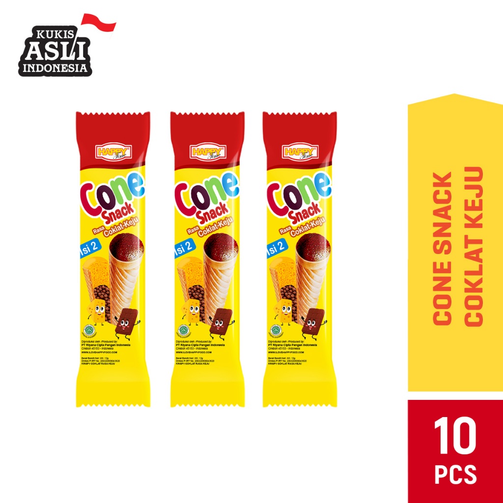 Happy Time Cone Snack Coklat Keju (Isi 10 Pcs) / Rasa Enak