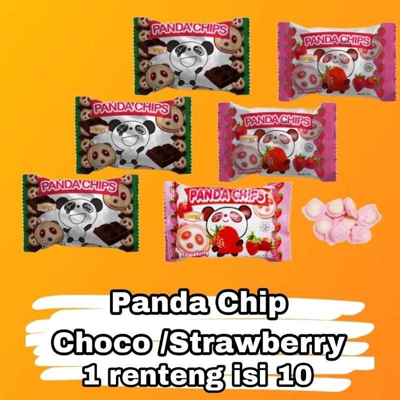 Happy Time Panda Chip Snack Bentuk Panda Krim Rasa Coklat / Strawberry 1 Renceng Renteng isi 10 pcs
