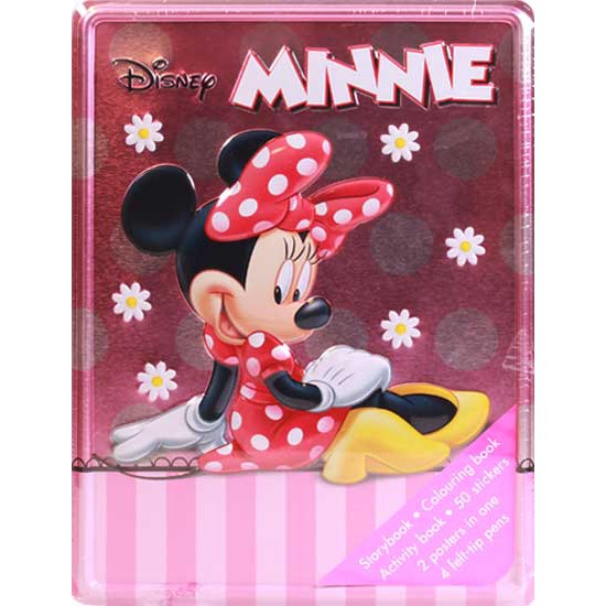 (BOX-HAPPYTIN-MNE) Happy Tin Disney Minnie Mouse Tin Box (Storybook, Colouring Book, Activity Book, 50 Stickers, 2 Posters in 1, 4 Felt-Tip Pens)