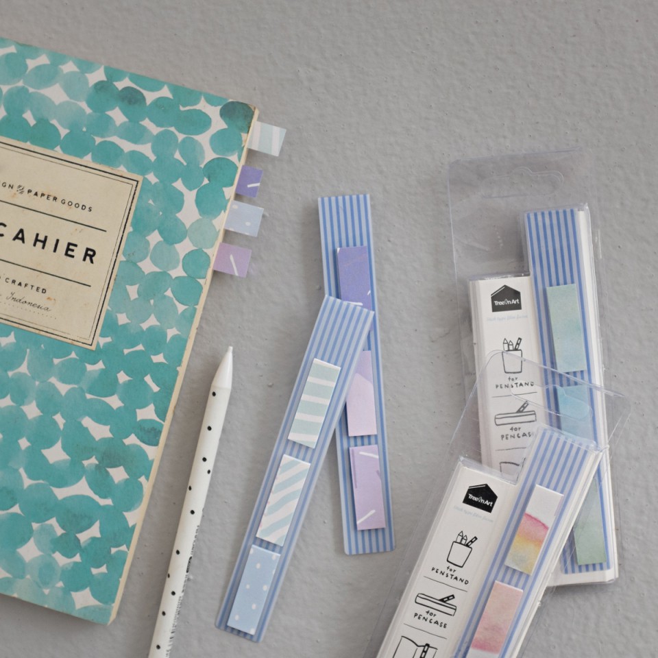 Ukuran kertas post-it: 3.4 x 1.1 cm.