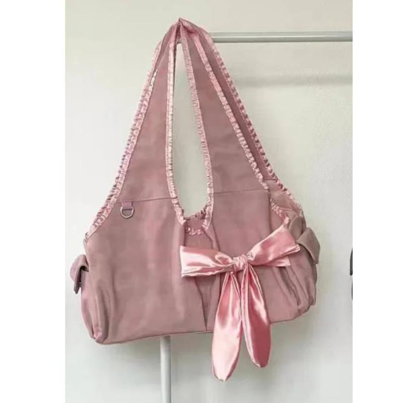 Harajuku Большая вместительная сумка-тоут для женщин Fairycore Aesthetic Bow Chic Grey Handbag Женская винтажная симпатичная сумка через плечо, новая розовый