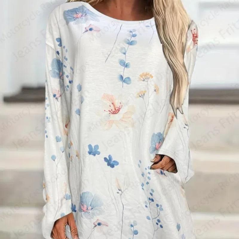 Harajuku Цветочный 3D-принт Футболки с длинным рукавом Женская мода Футболка Женские топы Футболки Длинные топы Женская футболка Туника Женская одежда 8XL