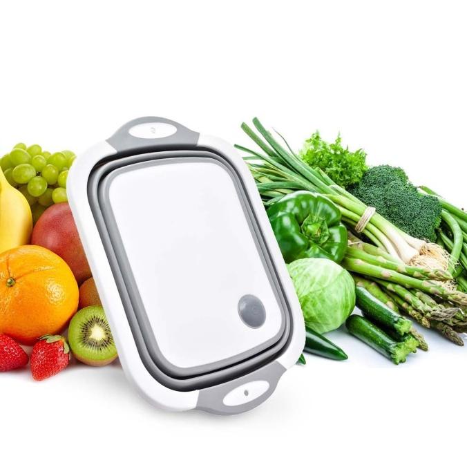 Papan serbagunan yang multifungsional.. bisa digunakan sebagai talenan dan sebagai wadah pencuci makanan , terbuat dari bahan silicon dan plastik yang aman dan tidak mengandung bpa sehingga sangat aman untuk memotong daging, sayuran , dan buah ditalenan karena material bahannya tidak akan ikut terbawa ke sari makanan.