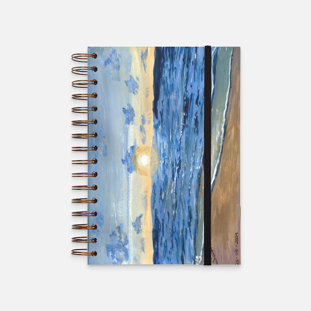 Notebook dengan cover portrait lukisan oleh Stella Renae. Portait kali ini adalah Sunrise by the Beach atau Matahari Terbit di Tebi Pantai. Grab you Sunrise Cover Notebook now to brighten up your day✨ !