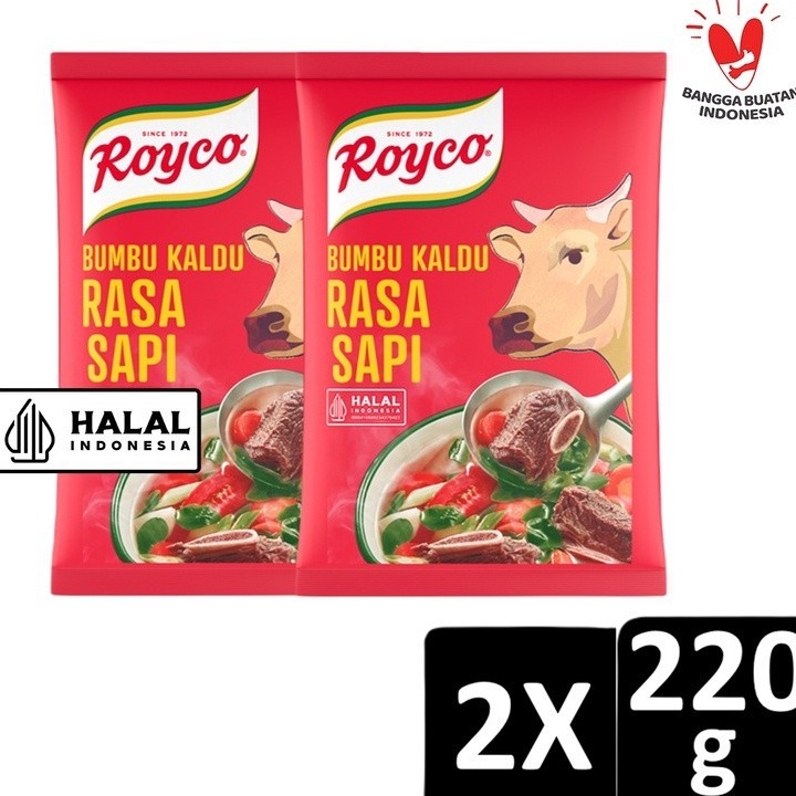 � Sajikan kelezatan tak terlupakan dengan bumbu penyedap rasa sapi Royco yang mengandung kaldu sapi asli. Sekarang dalam kemasan 220 g - BPOM MD655610003217