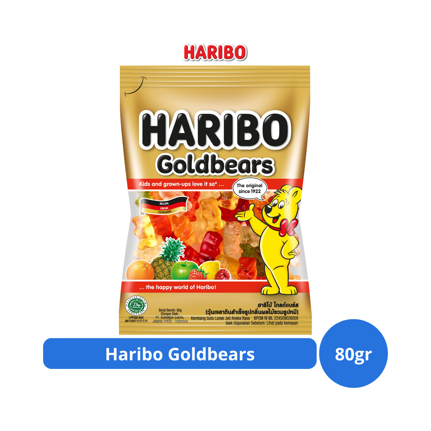 Permen gummy dengan bentuk yang unik dan warna yang menarik. Walaupun begitu, Haribo Goldbears tidak menggunakan pewarna buatan. Haribo Goldbears berbentuk beruang ini memiliki lima rasa buah, yaitu lemon, jeruk, nanas, raspberry, dan strawberry.