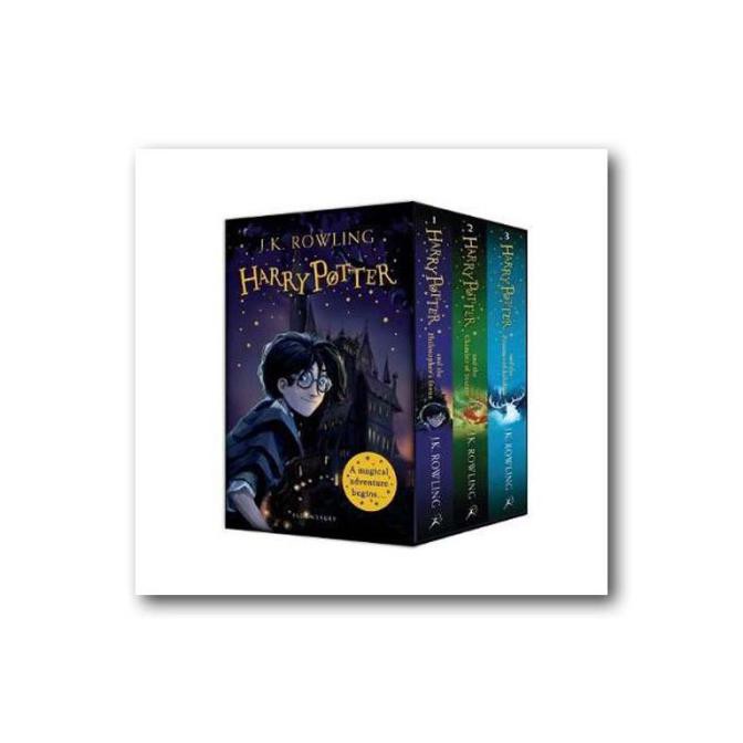 The essential introduction to the world of Harry Potter: three magical adventures in one beautiful box set. Every great story has a great beginning. From the moment Harry Potter is deposited on the doorstep of number four, Privet Drive, with a swish of Albus Dumbledore's cloak and the words 'Good luck, Harry', J.K. Rowling's irresistible storytelling pulls readers into an unforgettable, magical adventure. Harry Potter is a milestone in every child's reading journey and this gorgeous, collectable three-book set is the perfect introduction for new readers and young Muggles everywhere. This beautifully produced box set contains Harry Potter and the Philosopher's Stone, Harry Potter and the Chamber of Secrets and Harry Potter and the Prisoner of Azkaban, with enchanting cover art by Jonny Duddle - plus three gorgeous, colourful bookmarks with memorable quotes from favourite Harry Potter characters!