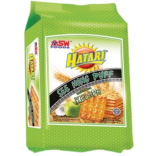 *Hatari See Hong Puff Kelapa* adalah camilan yang menawarkan kombinasi sempurna antara renyahnya crackers dengan cita rasa segar dan manis kelapa. Dibuat dengan hati-hati menggunakan bahan-bahan berkualitas tinggi, crackers ini menjadi pilihan tepat bagi pecinta kelapa yang ingin menikmati camilan ringan dan lezat.