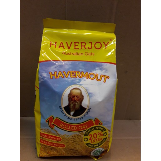 Haverjoy rolled oat dibuat dr butiran utuh oat Australia yg dipipihkan tanpa mengandung bahan tambahan pangan seperti pengawet atau penyedap rasa.berat bersih 1 kg(blm termasuk berat packing)