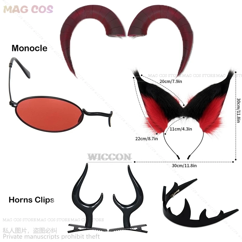 Hazbin Cos Alastor очки в стиле Косплей головной убор, рог головной убор для отеля аксессуары для ушей Halos Crown Angel Wing для ролевых игр Cos