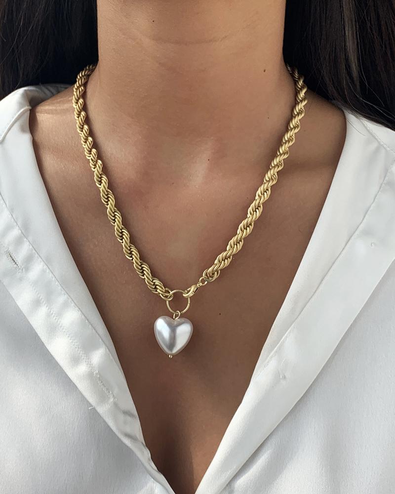 Heart Pattern Beaded Chain Pendant Necklace, Gold