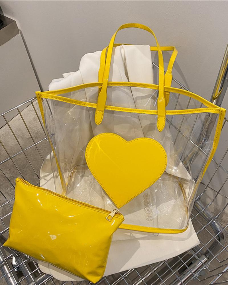 Heart Pattern Large Capacity Tote Bag With Inner Pouch, Yellow