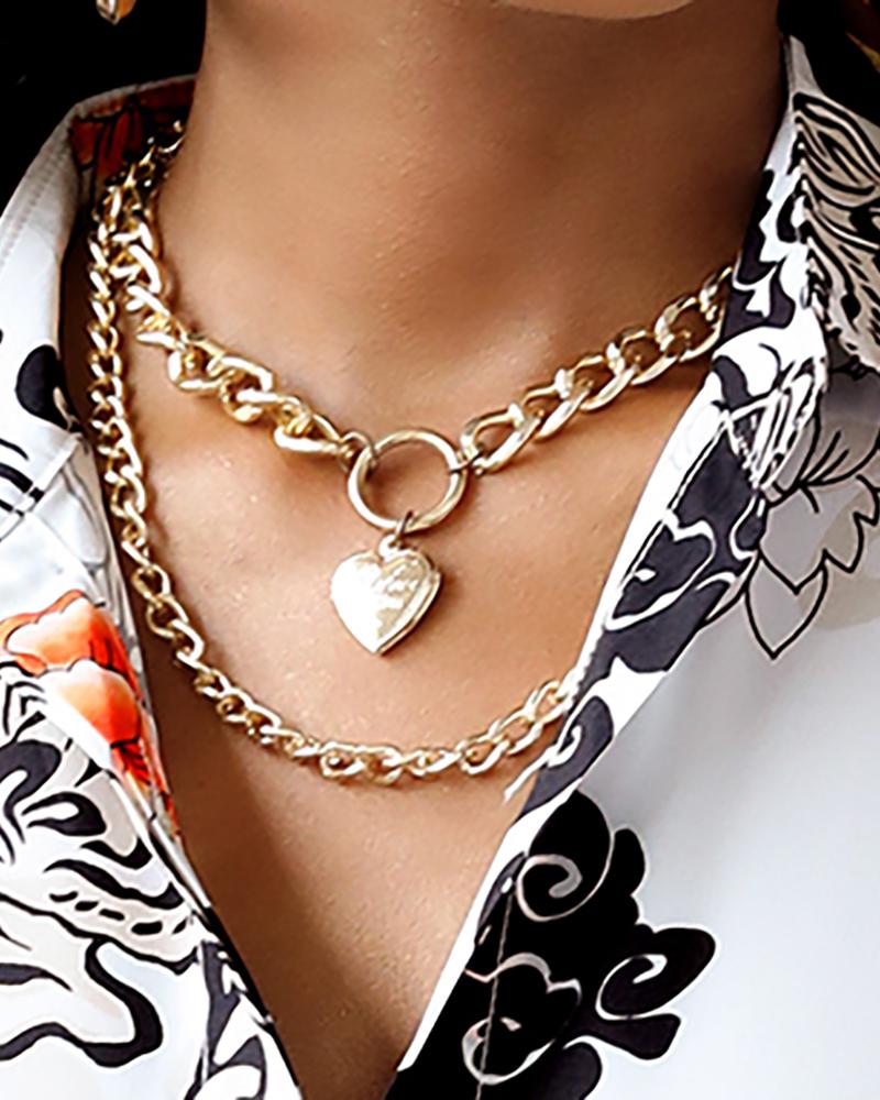 Heart Pattern Layered Pendant Chain Necklace, Gold