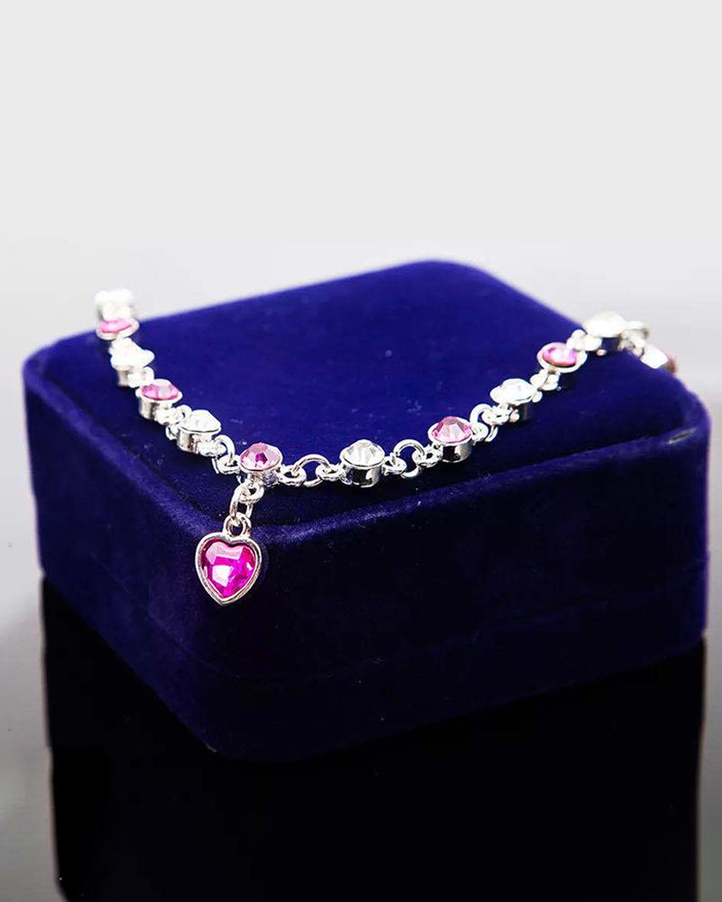 Heart Pattern Rhinestone Bracelet Set, Pink