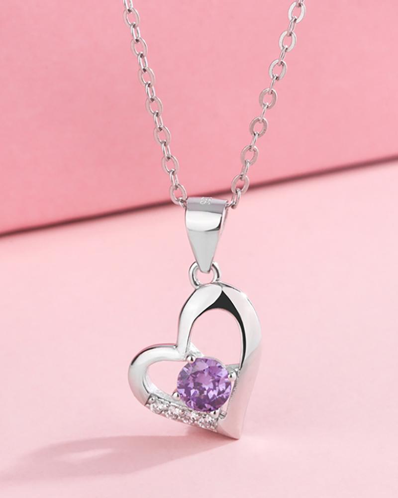 Heart Pattern Rhinestone Stud Chain Necklace, Purple