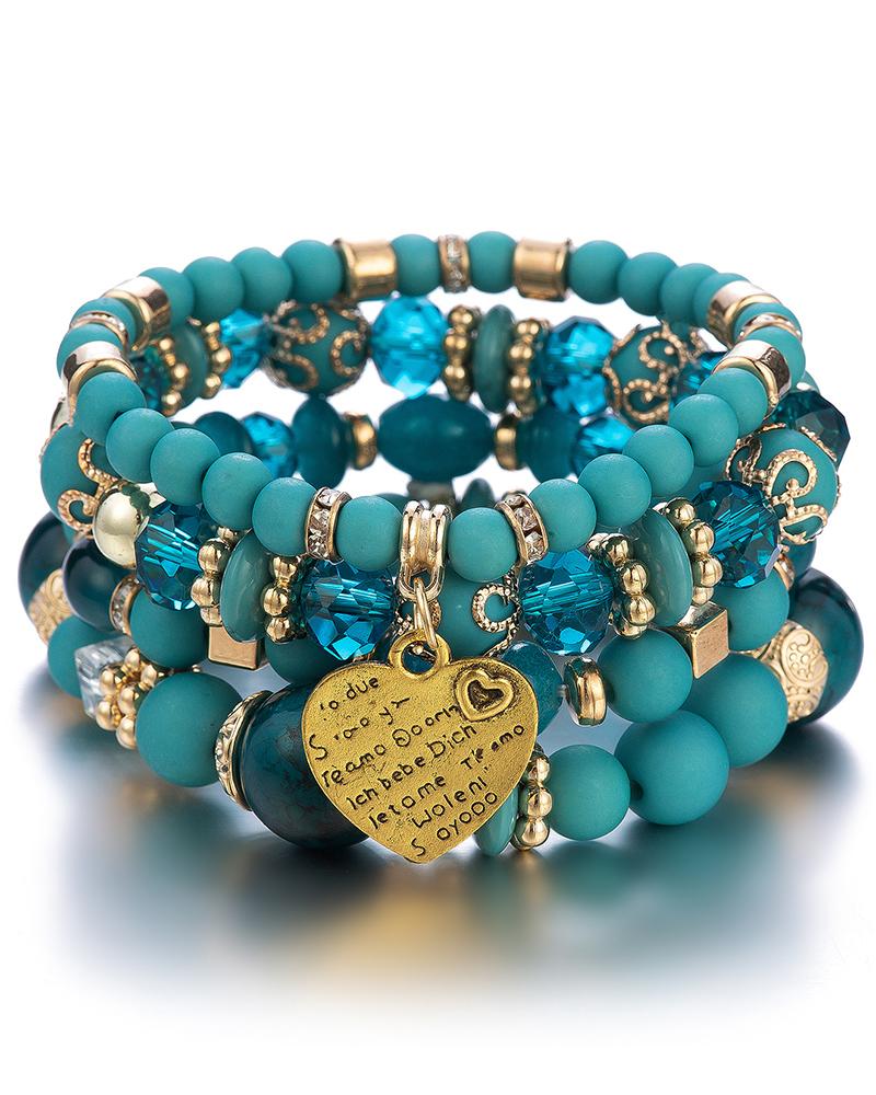 Heart Pattern Stacking Elastic Beaded Multi-layer Bohemian Bracelet, Blue