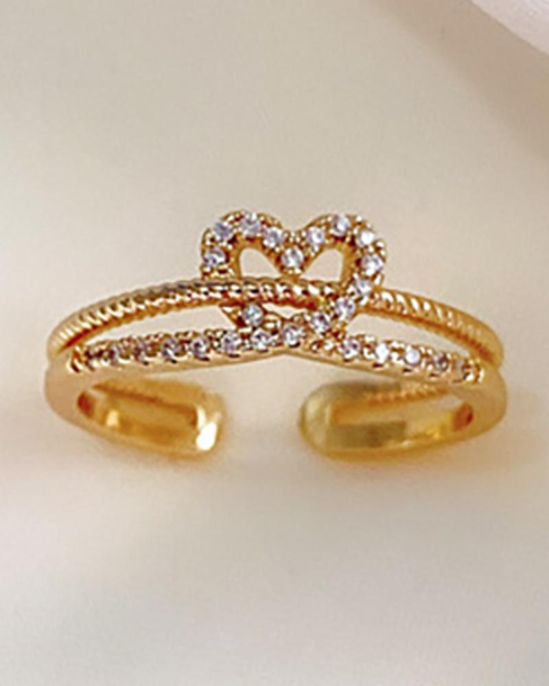 Heart Pattern Studded Cuff Ring, Gold