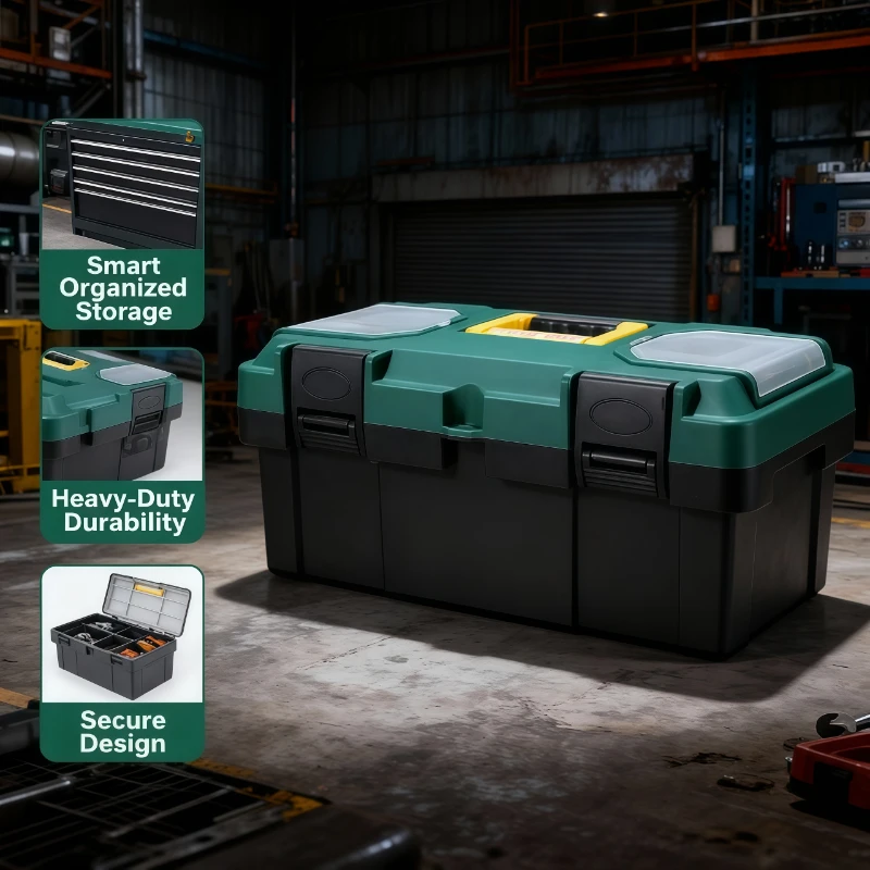 Heavy Duty Lockable Metal Toolbox Portable Tool Storage Chest Organizer Removable Tray Garage Workshop Mechanics Diy Toolbox