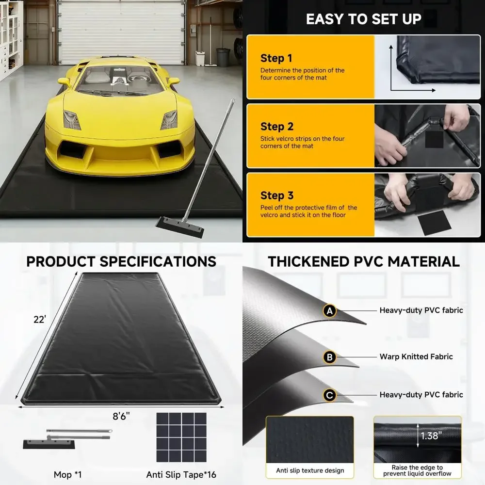 Heavy-Duty Waterproof Garage Mat for Car Parking, 8'6 x 22' Non-Slip Floor Protection, Large Containment Mat