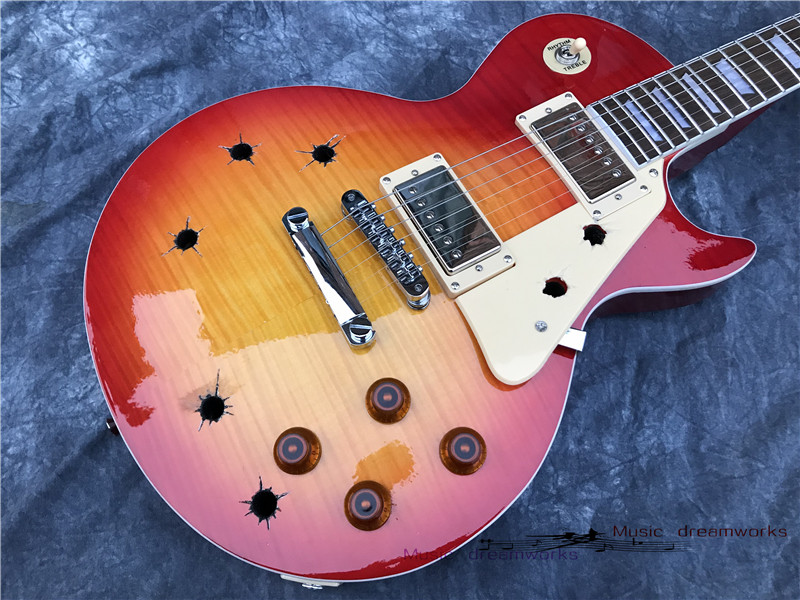 Heavy Relic ELECTRIC Guitar LP, Hand aged, Bullet hole, Tiger Maple veneer, Standard, chrome hardware