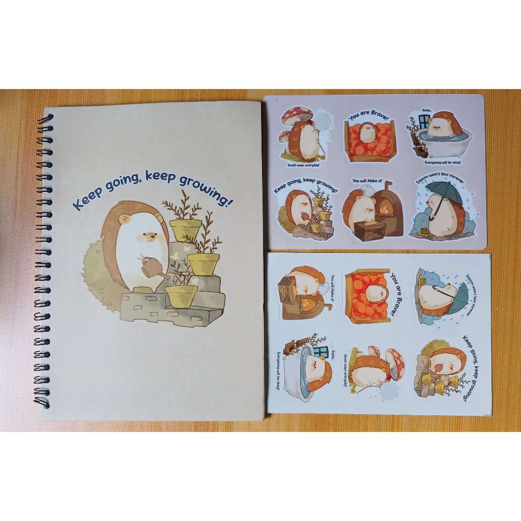 Notebook A5 dengan 3 macam desain cover pilihan yang lucu, bonus dua jenis stiker A6.