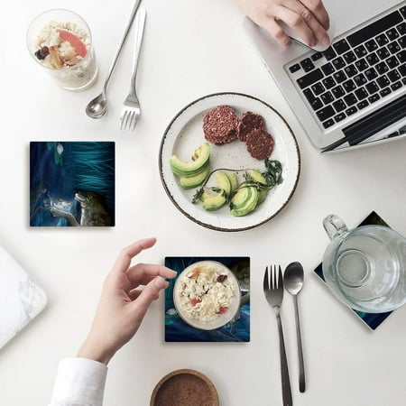 ZHANZZK Wolf Set of 8 Coaster for Drinks Absorbent Ceramic Stone Coasters Cup Mat with Cork Base for Home Kitchen Room Coffee Table Bar Decor