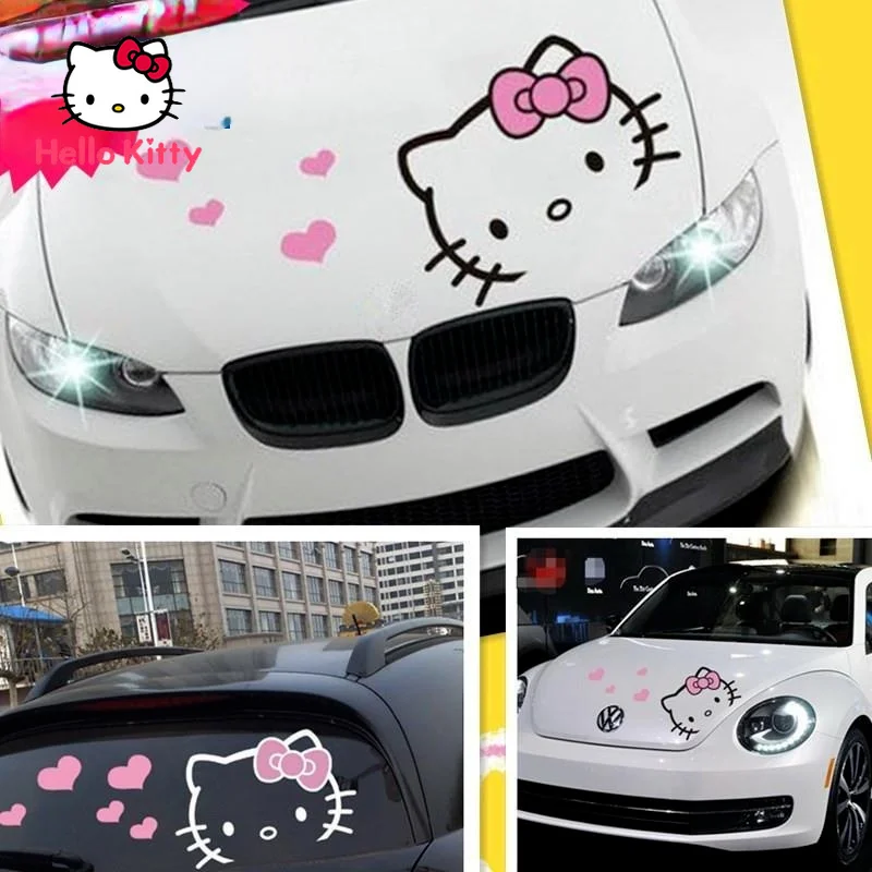 Hello Kitty Cute Cartoon Cover Car Stickers Personality Cartoon Creative Garland Headgear Body Decoration