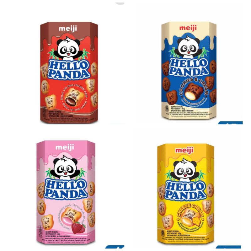 HELLO PANDA Biskuit adalah salah satu varian biskuit isi krim persembahan Meiji yang sangat terkenal dari Jepang. Biskuit ini disukai dan terkenal di berbagai belahan dunia karena kejutan dari krim lezat di dalamnya yang lumer ketika kita menggigit biskuitnya. Sensasi lumernya krim itulah yang menjadikan Hello Panda disukai banyak orang. Dengan bentuk biskuit karakter Panda yang lucu, Hello Panda semakin disukai. Hello Panda juga diproduksi dengan rendah gula dan kaya serat sehingga baik untuk dinikmati setiap hari. Bentuknya yang lucu dan mungil menjadikannya cocok untuk menemanimu dalam setiap aktivitasmu. Rasa yang lezat dan lumer di mulut jelas akan menjadi kesukaanmu. Nikmati kejutan kecil menyenangkan dari lezatnya krim dalam Hello Panda.