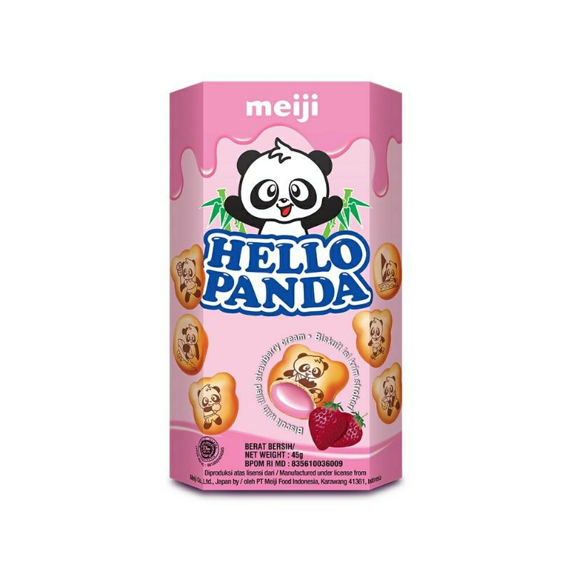 Biskuit renyah dengan 100 macam karakter bentuk panda, berisi krim stroberi lezat yang bisa menaikkan mood kamu dengan satu kali gigitan. Jadikan Meiji Hello Panda sebagai camilan di tengah rasa bosan.