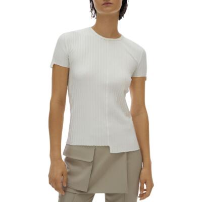 Helmut Lang Женская белая асимметричная футболка в рубчик BHFO 8982, Белый