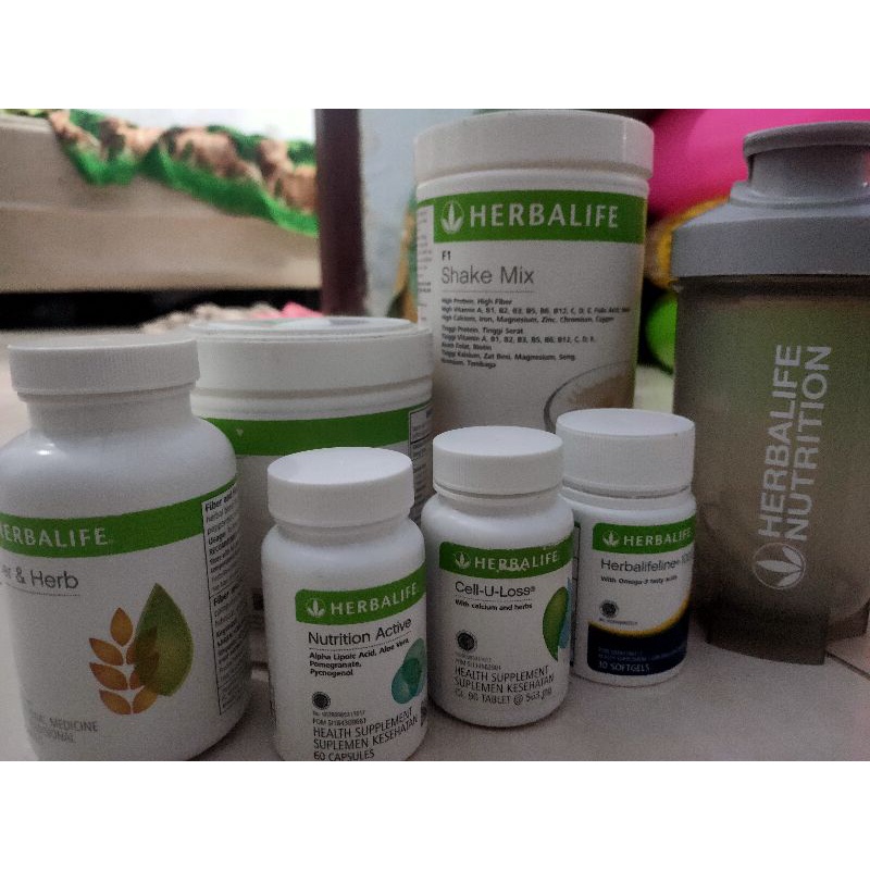 paket shake mix vanila dan berry, PPP, fiber & herb, nutrition active, Cell u loss, herbalifeline, botol shaker