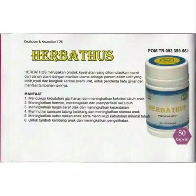 HERBATHUS diformulasi dari beberapa bahan alami pilihan yang masing-masing mempunyai khasiat nyata da bekerja sinergis saling mendukung, sehingga menghasilkan produk herbal dengan khasiat yang optimal untuk membantu pengobatan asam urat, pegel linu dan nyeri sendi.