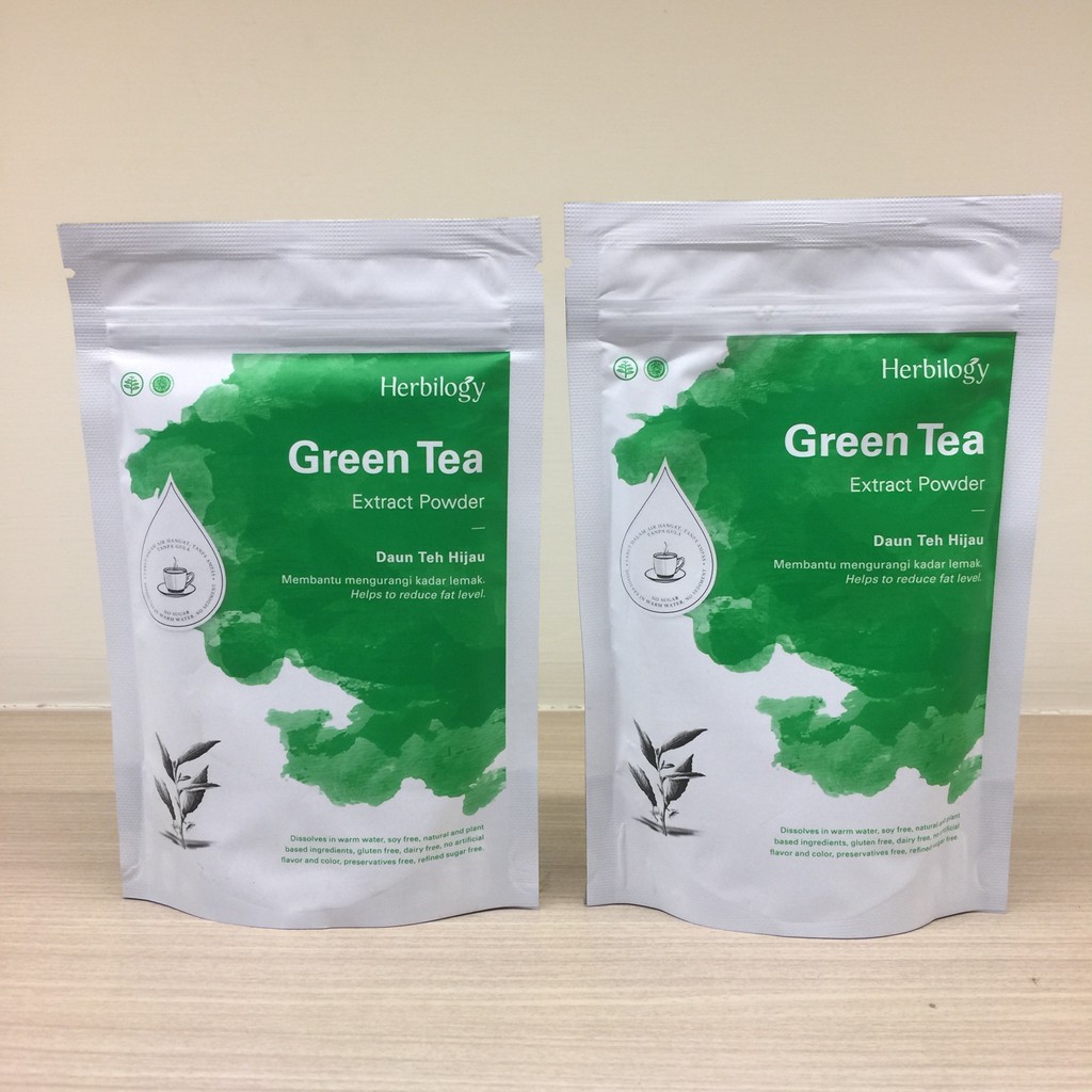 Ingredients : 100% Camellia Sinensis Extract Powder Asal tanaman: Dataran tinggi Indonesia, Jawa Barat. Rasa bubuk: agak pahit, rasa alami Green Tea. Warna Bubuk: hijau pekat menuju coklat. 1 sendok teh Herbilogy Green Tea Extract Powder setara dengan khasiat 1 mangkok daun Green Tea.