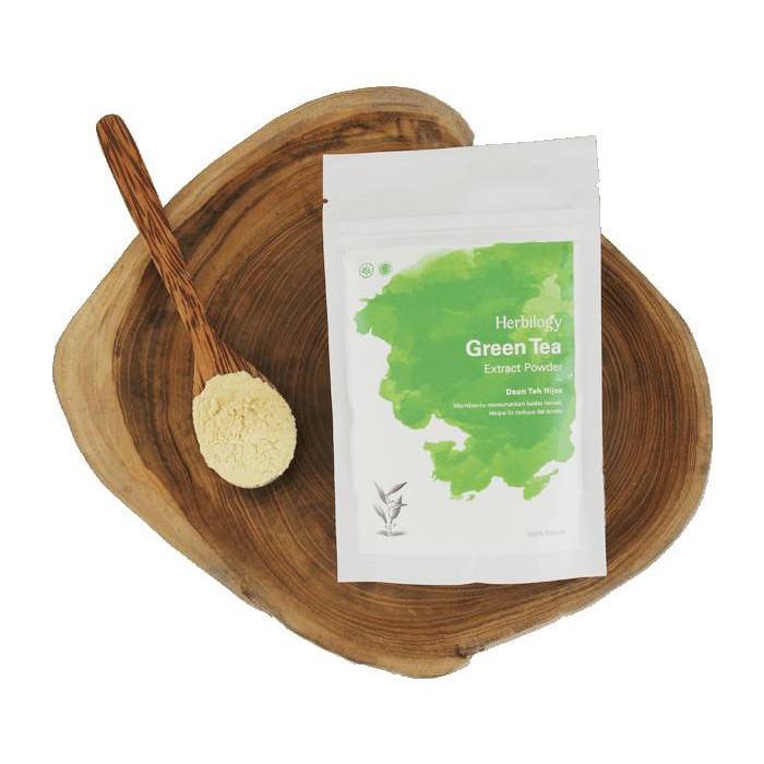 Green tea kaya akan anti-antioksidan, salah satunya catechins yang melawan dan mencegah kerusakan sel-sel tubuh (termasuk mencegah kanker). Karena mengandung ECGC, Green Tea juga dikenal dapat menekan nafsu makan, membantu proses detox dan membantu meluruhkan lemak. Karena fungsinya inilah, Green Tea adalah solusi penurun berat badan yang alami dan aman! Asal tanaman: Dataran tinggi Indonesia Rasa bubuk: agak pahit, rasa alami Green Tea 1 sendok teh Herbilogy Green Tea Extract Powder setara dengan khasiat 1 mangkok daun Green Tea. Bagaimana cara menggunakan? Herbilogy Extract Powder dapat larut sempurna dalam makanan/minuman. Cukup campurkan 1 sendok teh (3 gram) Herbilogy Green Tea Extract Powder dengan satu cangkir air hangat dan aduk. Dapat juga dicampurkan ke dalam segelas jus, smoothies, atau bahkan salad dressing dan lain-lain. Anjuran penggunaan: Satu hingga tiga kali sehari sesaat setelah makan. Sertai dengan balanced diet (hindari gorengan, gula, dan makanan berlemak), minum air yang banyak dan olahraga teratur. Produk ini sudah mendapatkan sertifikat Halal MUI.