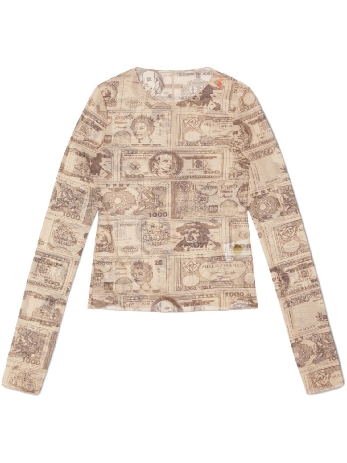 Heron Preston сетчатый топ Hp Currencies с длинными рукавами, нейтральный цвет