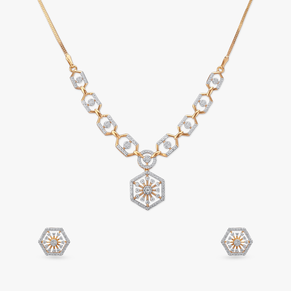 Hexagonal Elegance Diamond Necklace Set