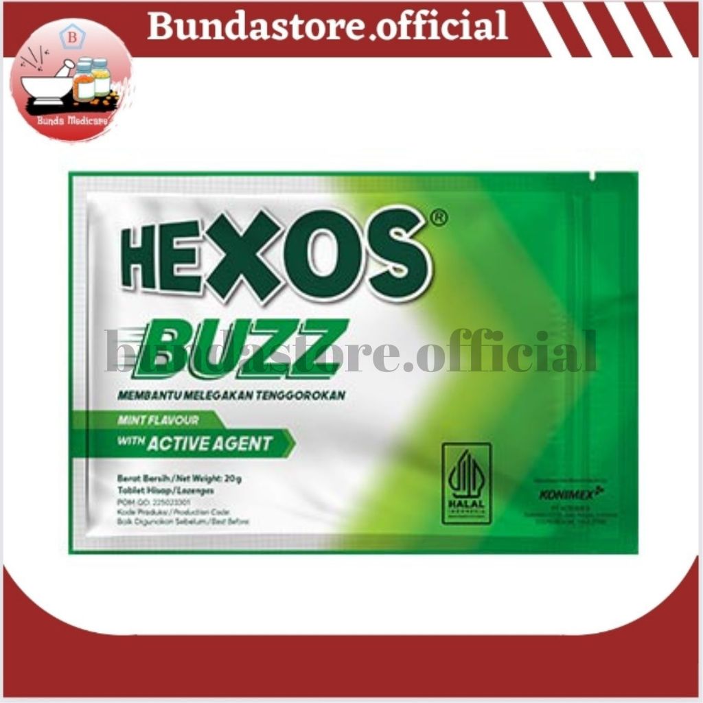 Hexos Buzz Tablet Hisap mengandung antiseptik Dibenal yang dapat membantu melegakan tenggorokan dengan rasa mint