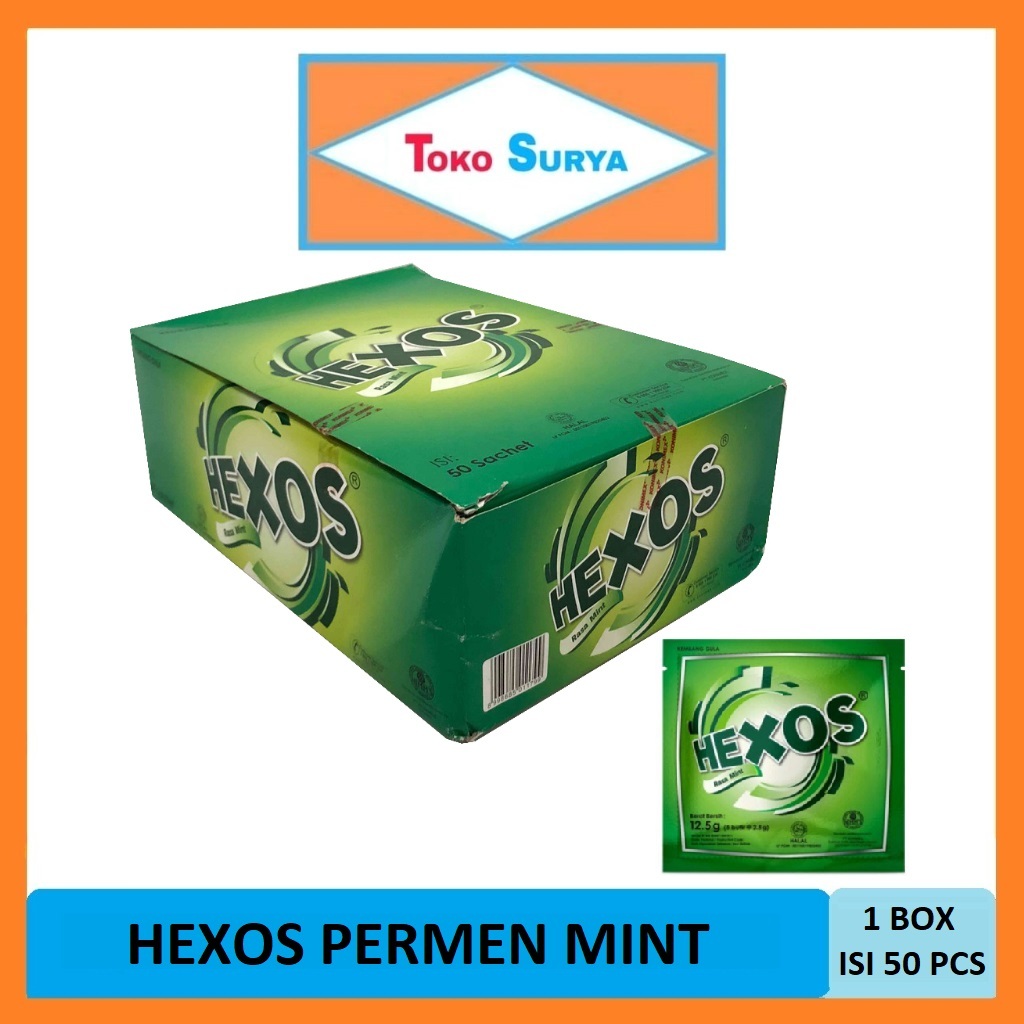 Hexos Permen Rasa Mint 1 Box 50 Sachet