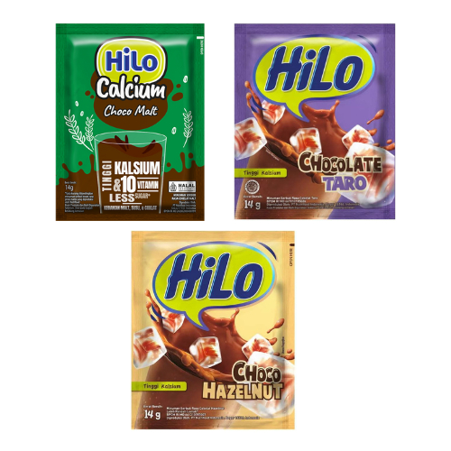 HiLo Choco Malt Chocolate Taro Choco Hazelnut Renceng 10x14Gr