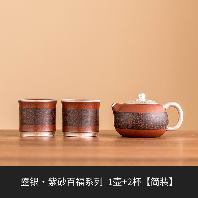High End Good Fortune 999 позолоченный серебряный чайный сервиз Zi Sha, полный набор, японский чайный сервиз, чайник и набор чашек, подарочная посуда