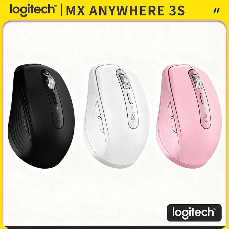 High-Performance Logitech MX Anywhere 3S - 8K DPI Glass Tracking, Hyper-Scroll, Silent Click, 3-Device Sync for Dorm Office