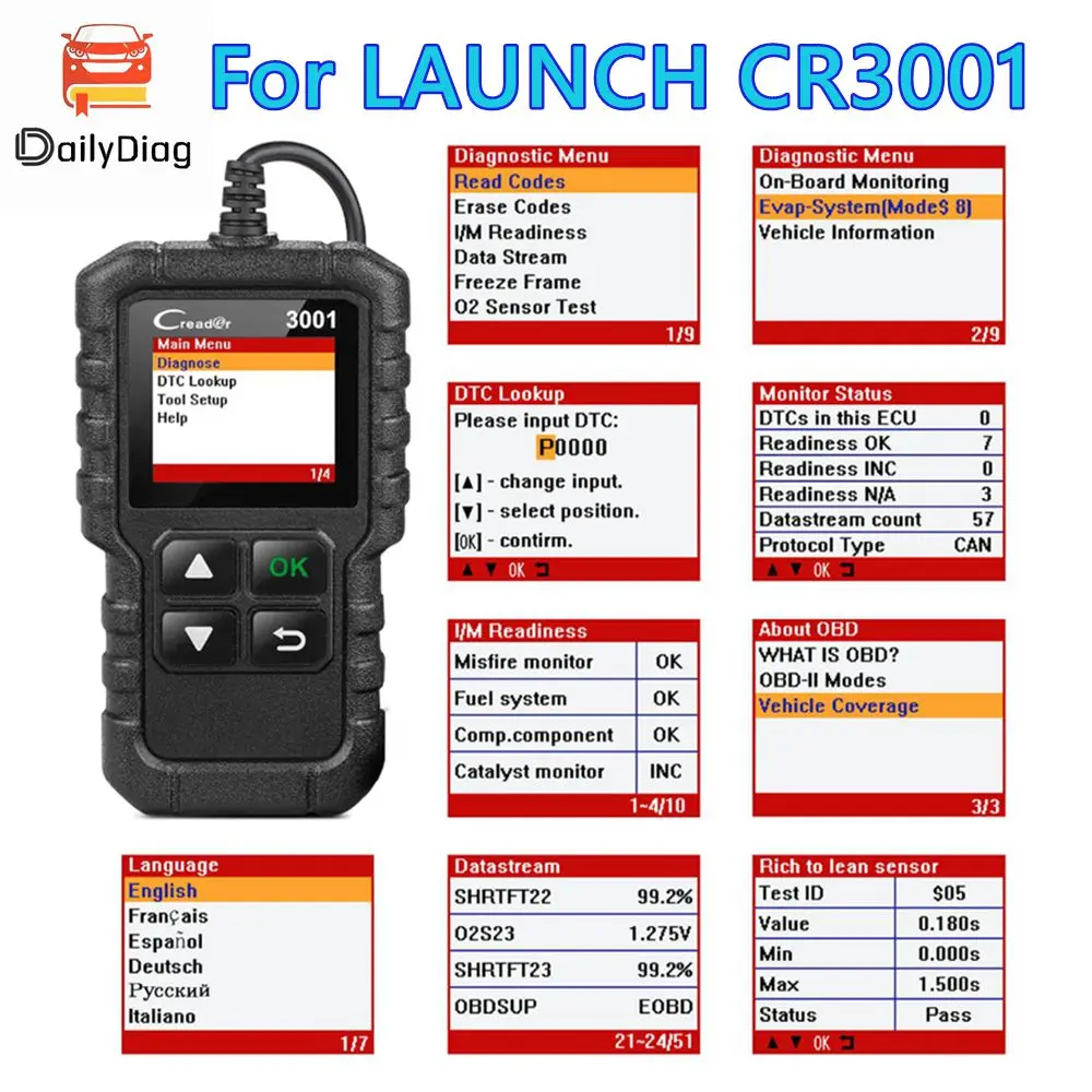 High Quality LAUNCH X431 CR3001 Free Update Support Multi-Language Check Engine Scan Tool Car Code Reader Support All Protocol