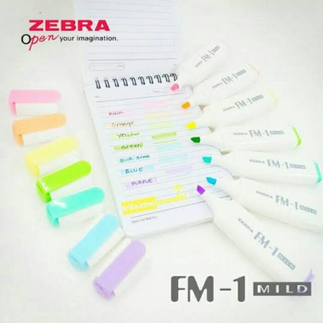 Textliner zebra FM-1 warna terbaru lebih soft (pastel)