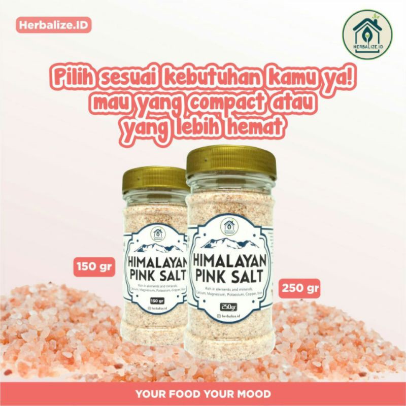 garam Himalaya pink salt By Herbalize, kemasan 150gr dan kemasan 250gr